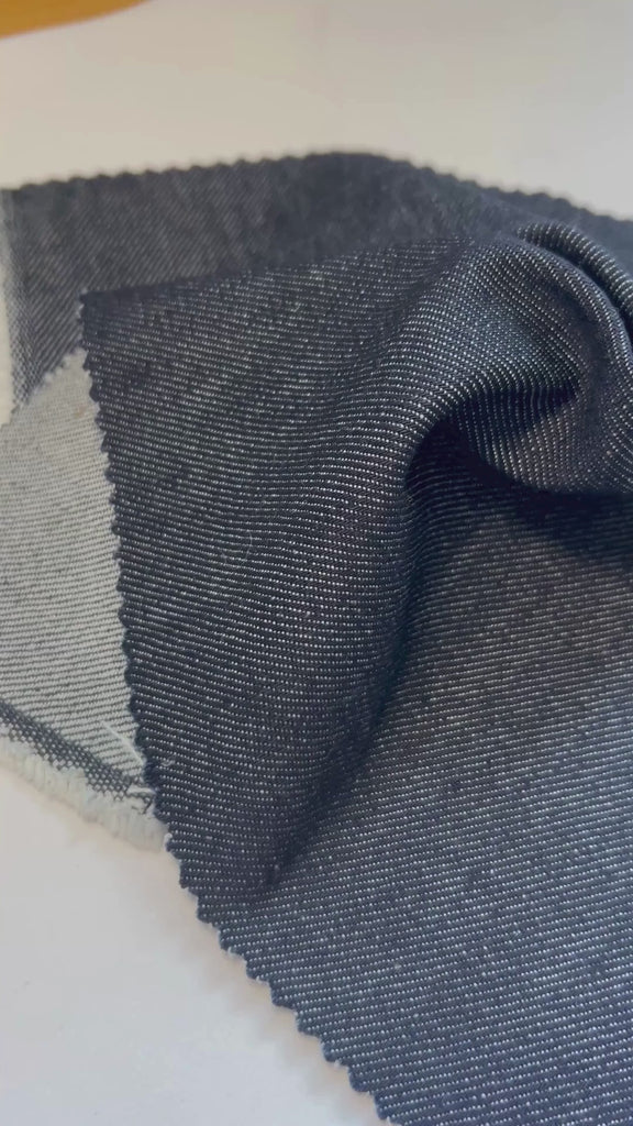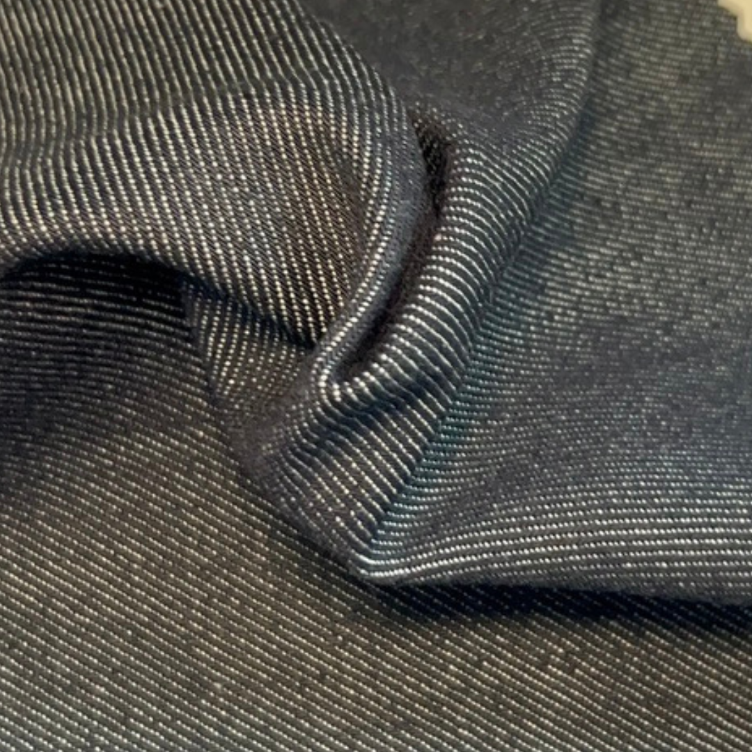 - This mid-to-heavyweight denim features a firm yet refined handfeel with a clean 3/1 Z twill structure, combining durability with a subtly softened touch from lyocell. Weighing approximately 373 g/m², this sustainable fabric is well suited for jeans, jackets, skirts, workwear silhouettes, and contemporary denim pieces that balance structure and comfort. Made from regenerative cotton blended with post- and pre-consumer recycled cotton and lyocell, it is supported by REGENAGRI and GRS certified material standards, ensuring traceability and strong circular sourcing credentials. Ready to ship with 2,000 meters available, this denim is produced in Egypt, offered at 166 cm width for efficient, responsible production.